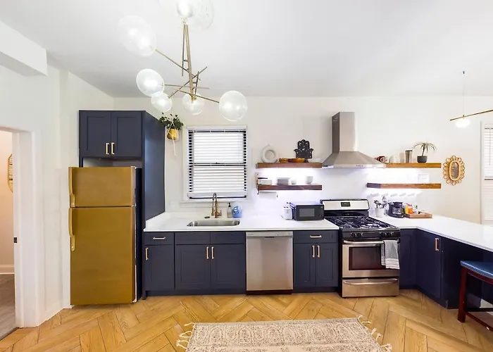 A acomodação de Berwyn dispõe também de cozinha totalmente equipada com refrigerador e forno, bem como de máquinas de café/chá. Os hóspedes podem desfrutar de uma refeição no o bar Flapjack Brewery, localizado a uma curta distância a pé desta propriedade. Os hóspedes podem explorar as opções de transporte com a estação de autocarros Oak Park & 31st Street NB, localizada a cerca de 10 minutos de distância a pé.